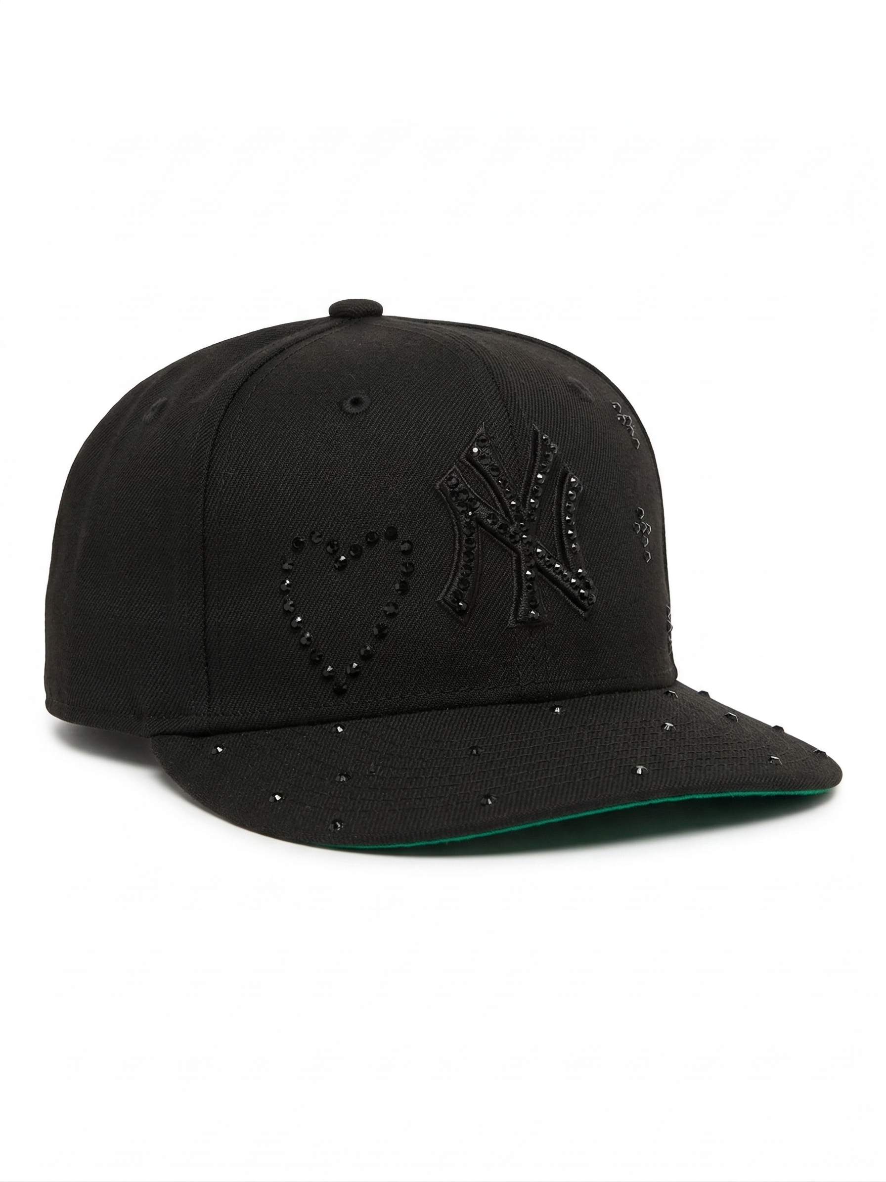 🧢✨ Gorra NY Negra con Undervisor Verde y Perlas – Talla 7